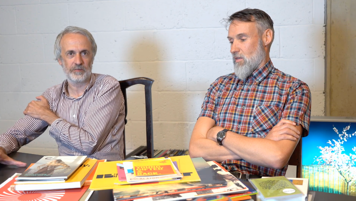 Small 2-3 rooms of what was once a house next door to Talk Back run by Mel Smith and Griff Rhys Jones. Each time they moved to a bigger space. 3-4 employees to start then grew to 20-30. Wolff Olins first to have macs and intro approached Adrian for advice on getting a mac and then offered him a job. Started with black and white screens. Still play with analogue and its good practice to be able to draw and draw type. Rather than going straight to the computer.