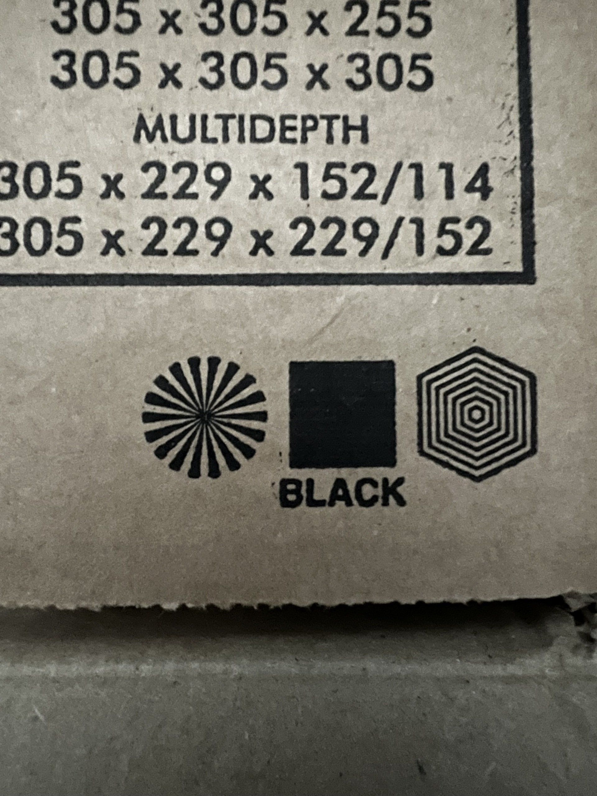 With it being Christmas and all the extra parcels arriving, I started looking at packaging and the familiar symbols and slogans. We always have a few boxes tucked away for repurposing either for storage or guinea pig houses and shelters. I have always been curious about these marks especially the printers symbols, as they can produce different textures and outcomes depending on the amount of ink used and how much spread/bleed, as a result. Now I have an outlet for them. First thoughts were to create a navigation system, with the arrow symbols, numbers etc like you'd find to orientate your way through a multi-storey car park and then use the printers symbols to add some abstract art to the often drab grey concrete walls and pillars.