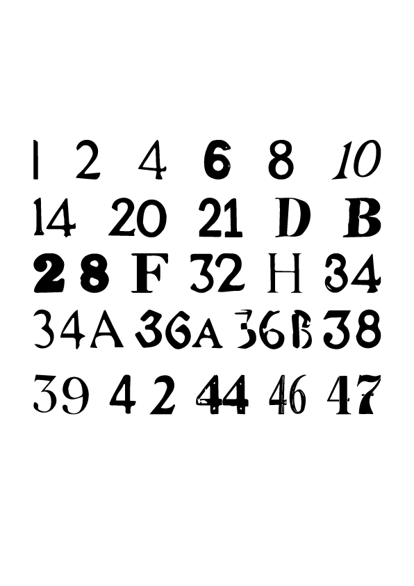 I decided to produce an abstract road map of the properties today . The missing numbers represent the lost or missing from the past to in turn convey there is a history behind it and the variety of type styles reflect the eclectic character of the street past and present. I feel the figures are just about recognisable as building identifiers and as to what they represent.