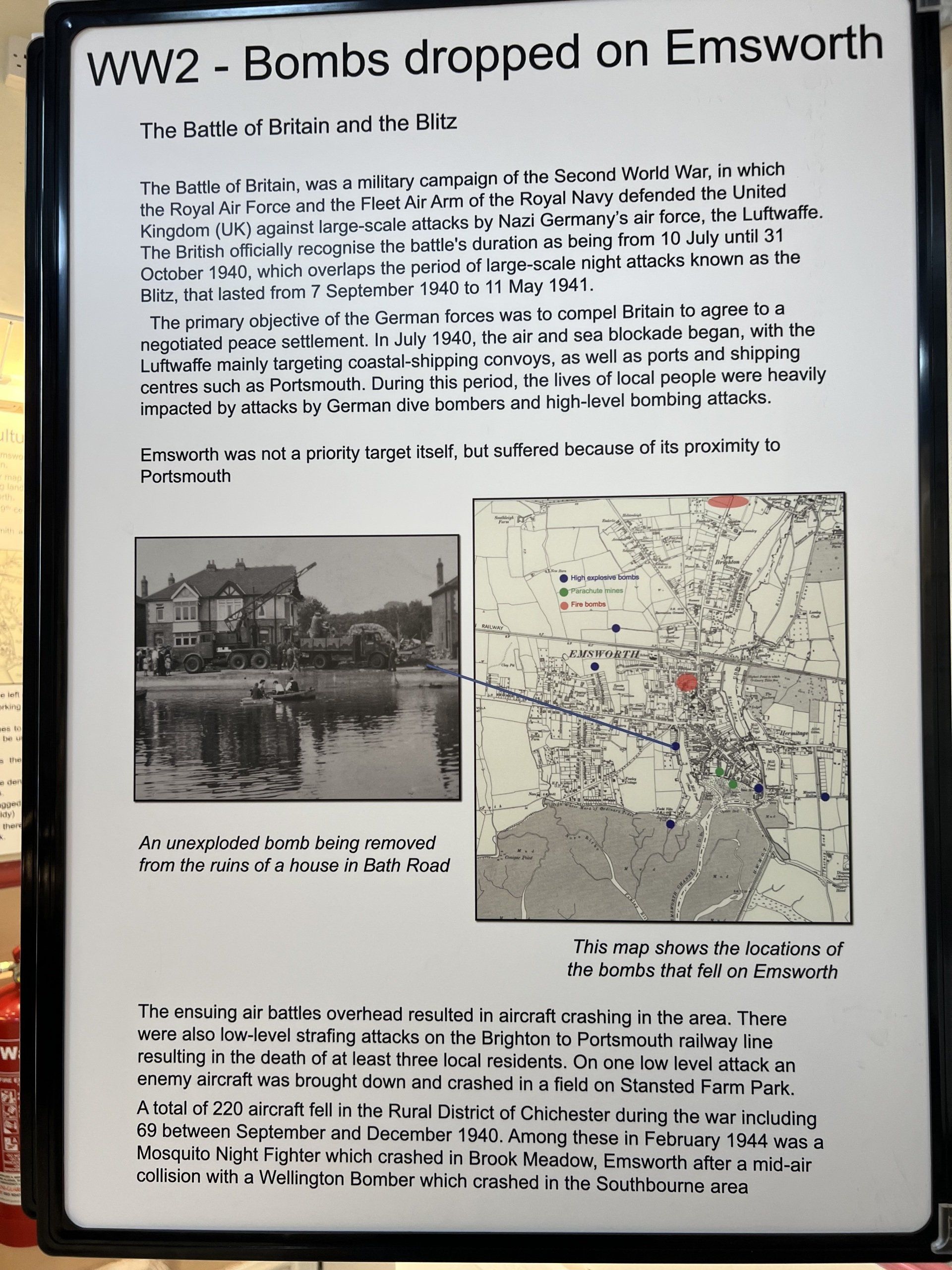 After scouring the archives another museum volunteer enquired how I was getting on and then promptly whisked me off to the museums main collection. On studying a map from 1876 the missing large buildings protruding into the skyline were indeed from a brewery. Emsworth had also been hit by several bombs during the second world war due to its proximity from the city of Portsmouth. Not many buildings had taken a direct hit but the force from the blasts had caused considerable damage.