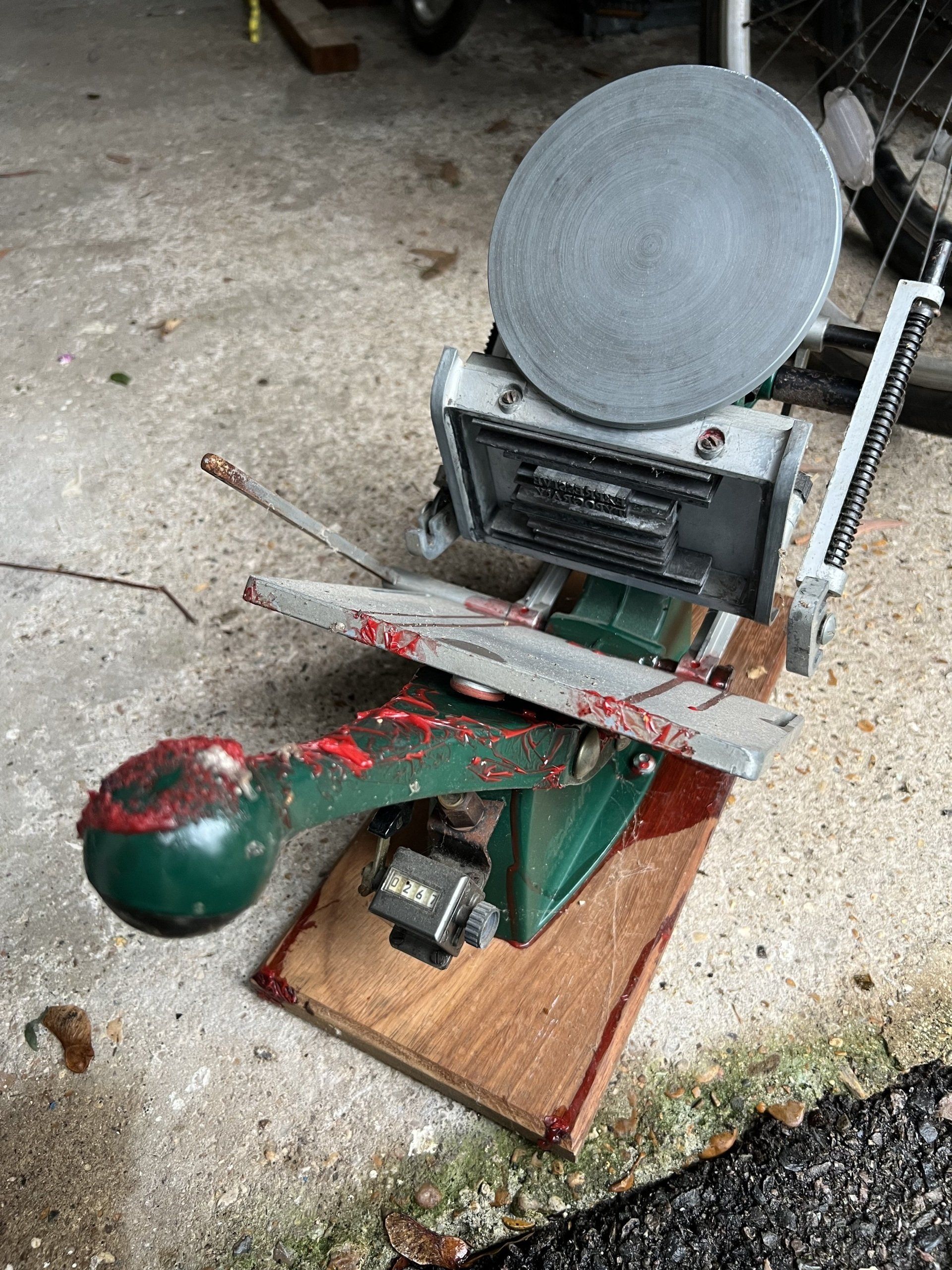 Pictured above is my 5x3 press I rescued from eBay and refurbished from a once neglected paint flaking relic to a fully working teaching machine I would share with students. Roll on a few years, sitting beautifully displayed on a shelf in my studio unnoticed and untouched, the rollers had begun to liquify until completely melted away leaving it in the sorry state it is in today. Moral of the story buy the best from the experts! For now, relegated to the garage until refurb number two in the fullness of time.