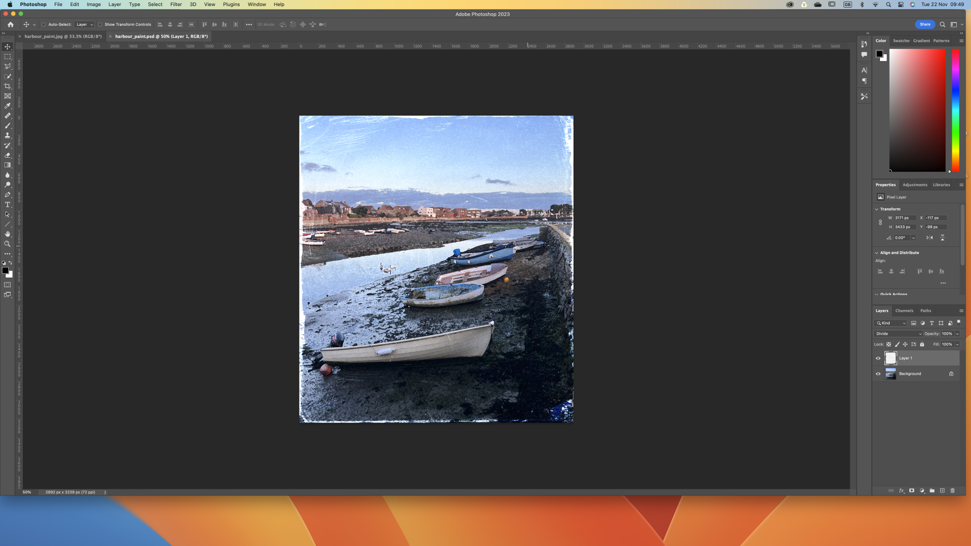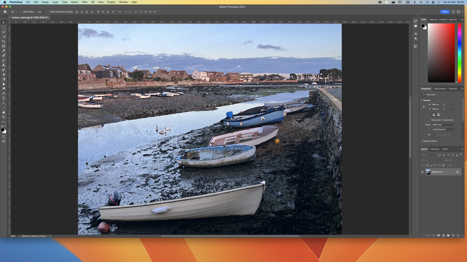 Although I chose to create my final outcome as a poster it would equally work as a postcard. Had I more time I would have experimented by creating the illustration by hand to get a more authentic outcome to the inspiration, but my illustration skills are not the quickest and I would not have got to this stage. The alternative would have been a vector illustration from the original photograph, and subsequently simplified the scene further.